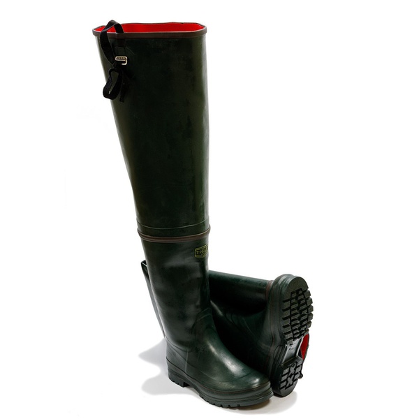 Рыбацкие сапоги из синтетического каучука превосходят в прочности сапоги из ПВХ и намного более износостойкие, чем лёгкие сапоги ЭВА. Из смеси натуральной и искусственной резины сделан верх обуви, нескользящая подошва – из синтетической морозостойкой резины.